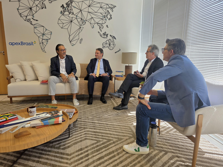 O superintendente do Porto de Itajaí, João Paulo Tavares Bastos, e o coordenador executivo de Planejamento Estratégico, Maurício Moromizato, participaram de uma reunião na sede da ApexBrasil, em Brasília, na manhã desta sexta-feira (1º). O encontro teve como pauta os efeitos do recente aumento tarifário imposto pelos Estados Unidos a produtos brasileiros, com foco especial nas exportações que utilizam o Porto de Itajaí como principal ponto de escoamento.