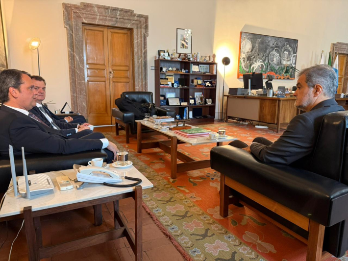 Durante a agenda na capital italiana, a comitiva do Porto de Itajaí realizou reunião com o embaixador do Brasil na Itália, Renato Mosca, para apresentar o processo de retomada operacional do porto catarinense, além de discutir oportunidades de ampliação das exportações brasileiras, especialmente de produtos do agronegócio.